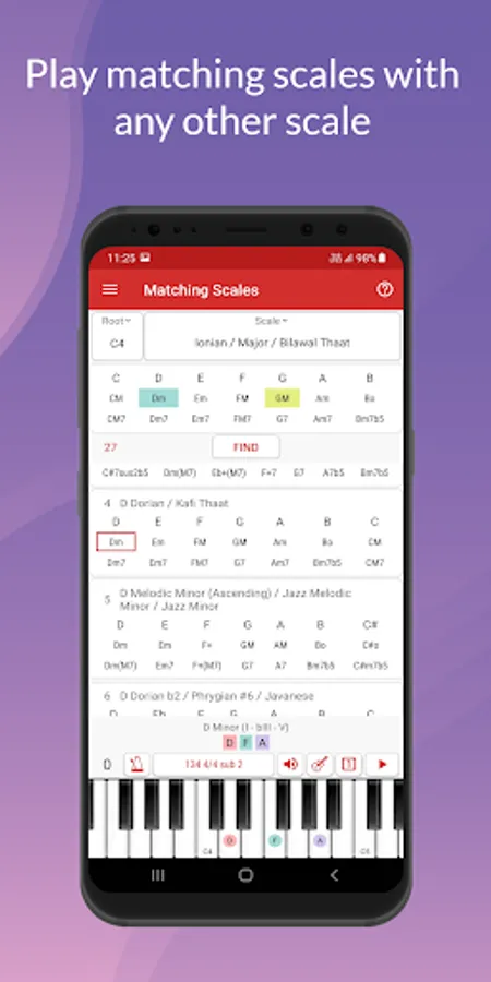 ✅ Matching Scales → Shows all possible alternative scales those can be played with any scale
