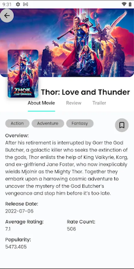 See Movie trends based on TMDb website, in this app you can add to favorite movie, see trailer and review