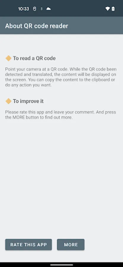 3. In order to read a QR code from camera, this app requires only the camera permission, and does not require any unnecessary permissions.