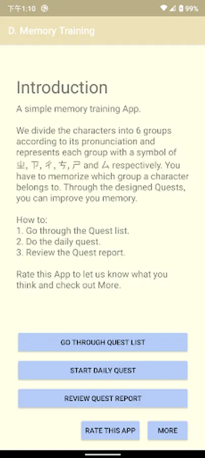 1. The function is simple, that is, through the quests and report, it helps you improve the memory.