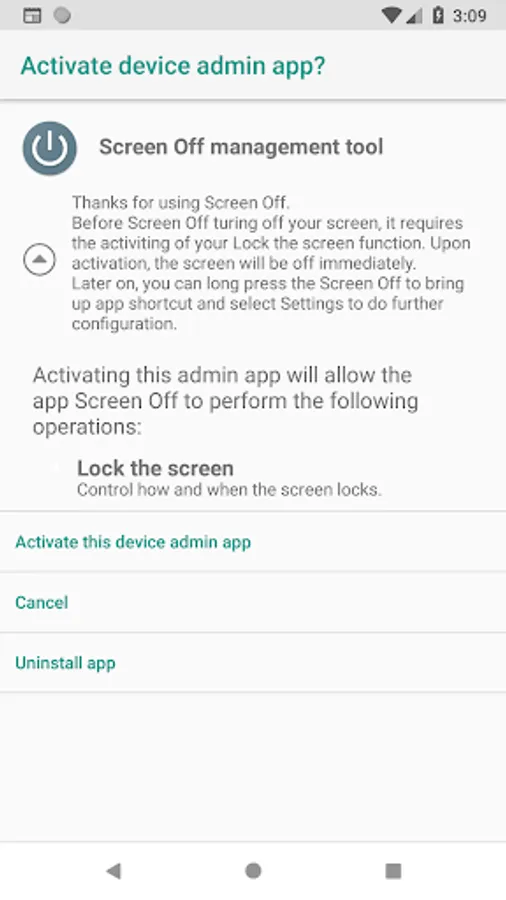3. In order to help you close the screen, this program uses the Device Administrator permission, and does not require any unnecessary permissions.