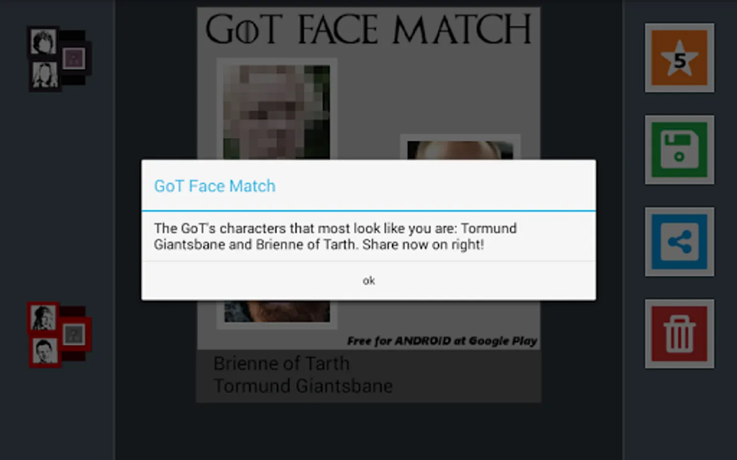 Also, use pictures of friends saved in the memory of your smartphone or tablet, and find who they most look like among the characters from GoT! Then share with them the results!
