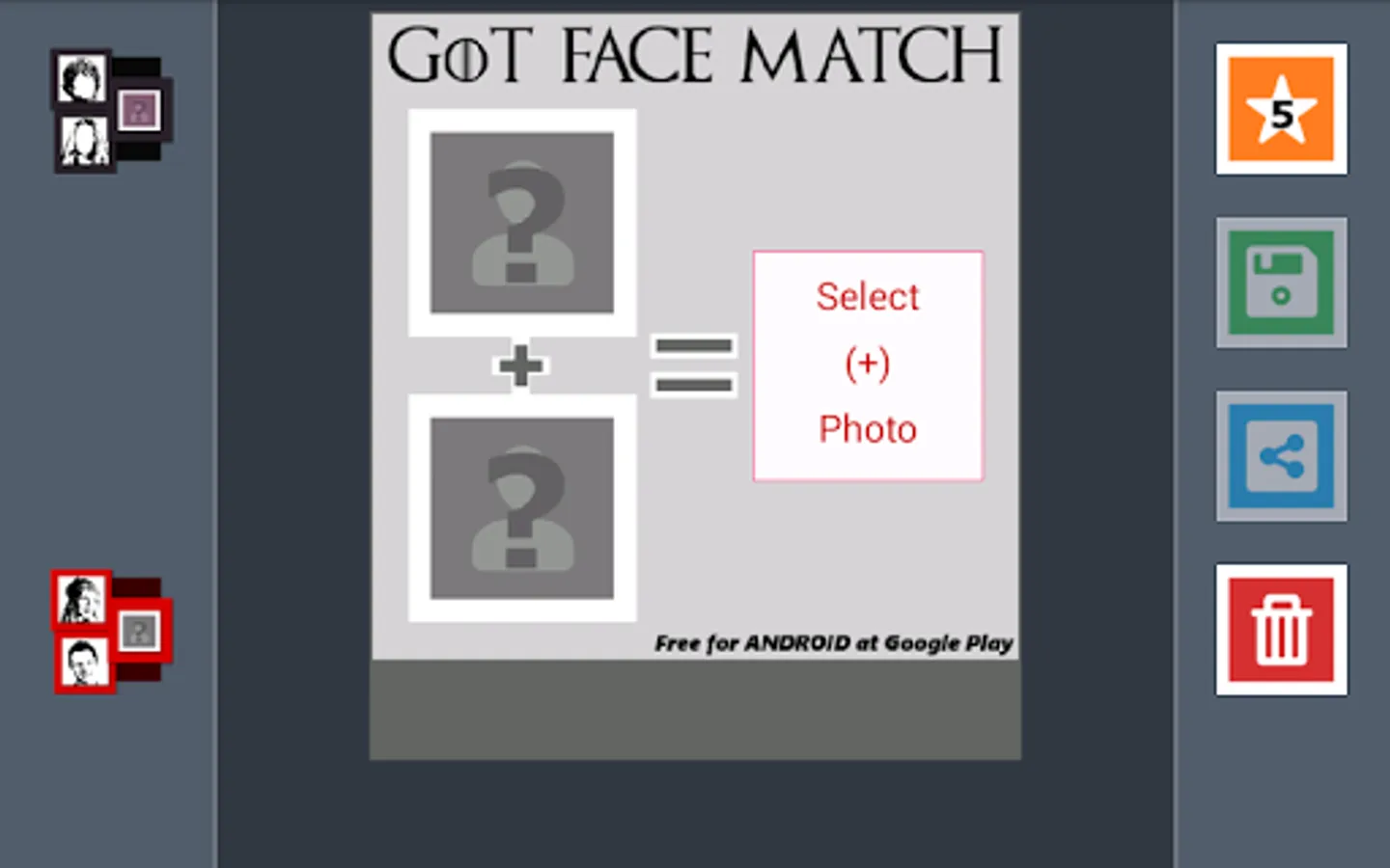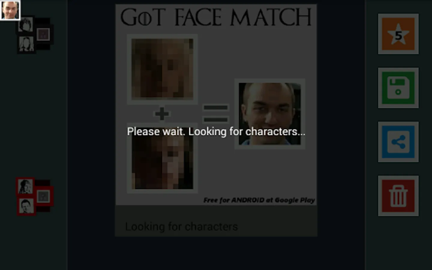 Super fast download and easy to use: within the app, select any photo from your smartphone or tablet, and just wait for the app to find out the characters from GoT that most look like you! Then share the results on social networks or by message, or save them in your phone's or tablet's memory!
