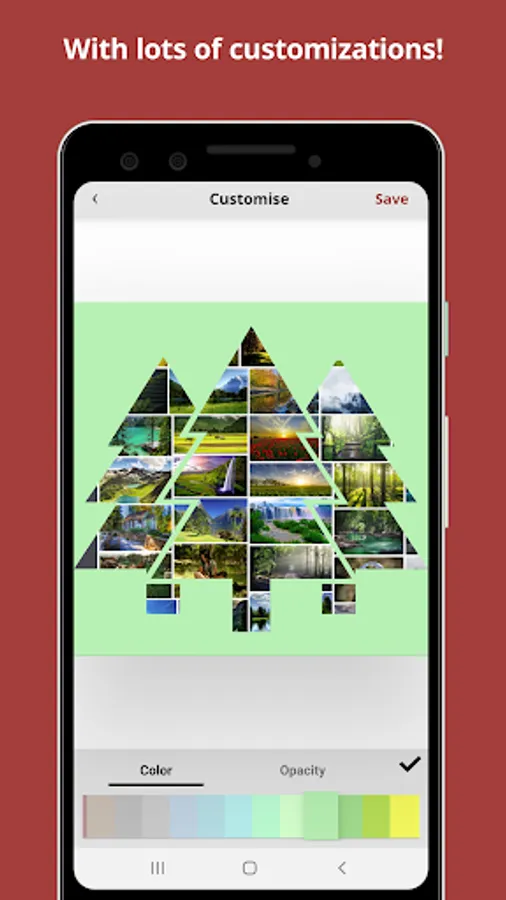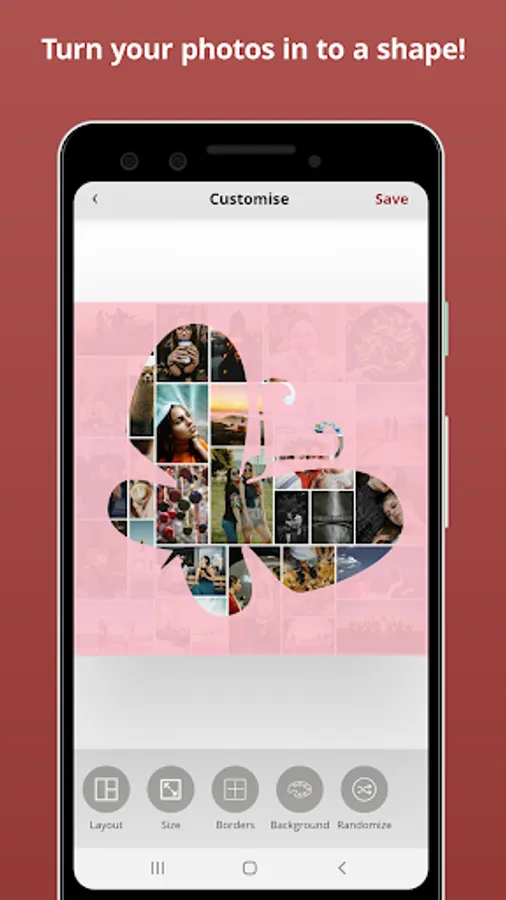 Make a collage as a shape with PicShape! Choose from an inventory of 30+ photo shapes (like tree shape, heart shape etc.), then use an unlimited amount of your own photos to bring it all together.