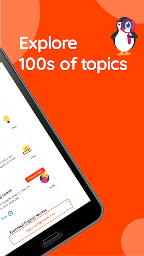 Pingoo is a micro-learning app that enables you to learn about a new topic in a few minutes while you are learning anew language (such as English). By selecting a topic from a wide range of topics, from health and wellness to literature, history, innovation, design, and privacy!