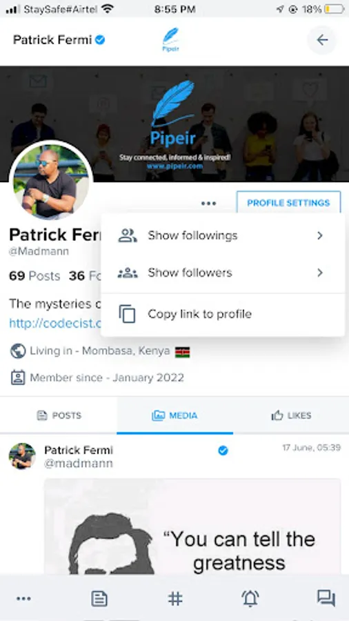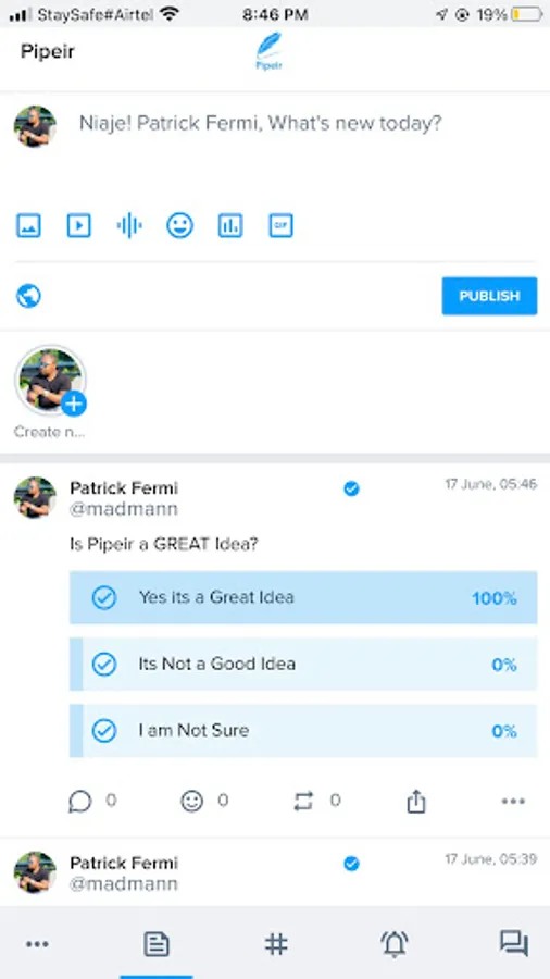 Pipeir is a Professional social media Platform for everyone to freely express themselves, to follow conversations, discuss and share with others.