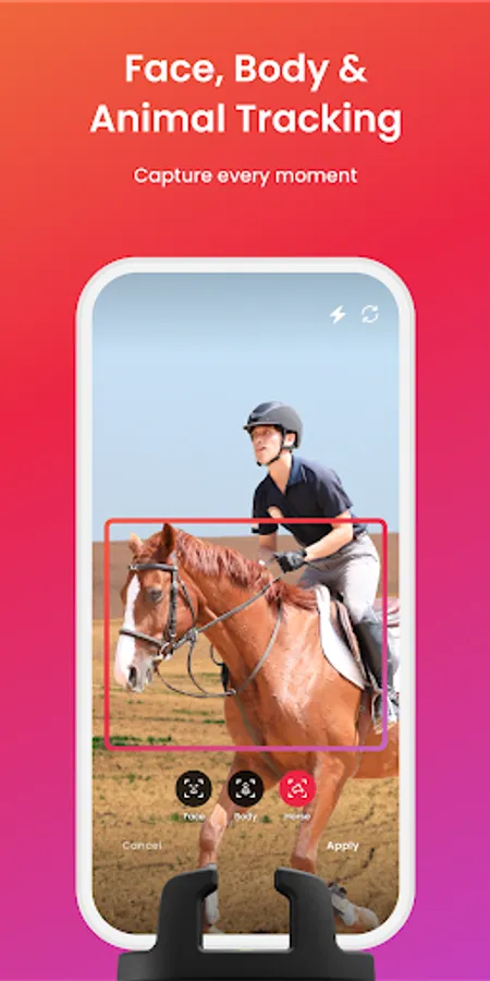 Using brand new AI tracking technology, there’s never been an app better equipped to follow your every move. Choose between Face Tracking, Body Tracking and Horse Tracking for the ultimate photo and video taking experience.
