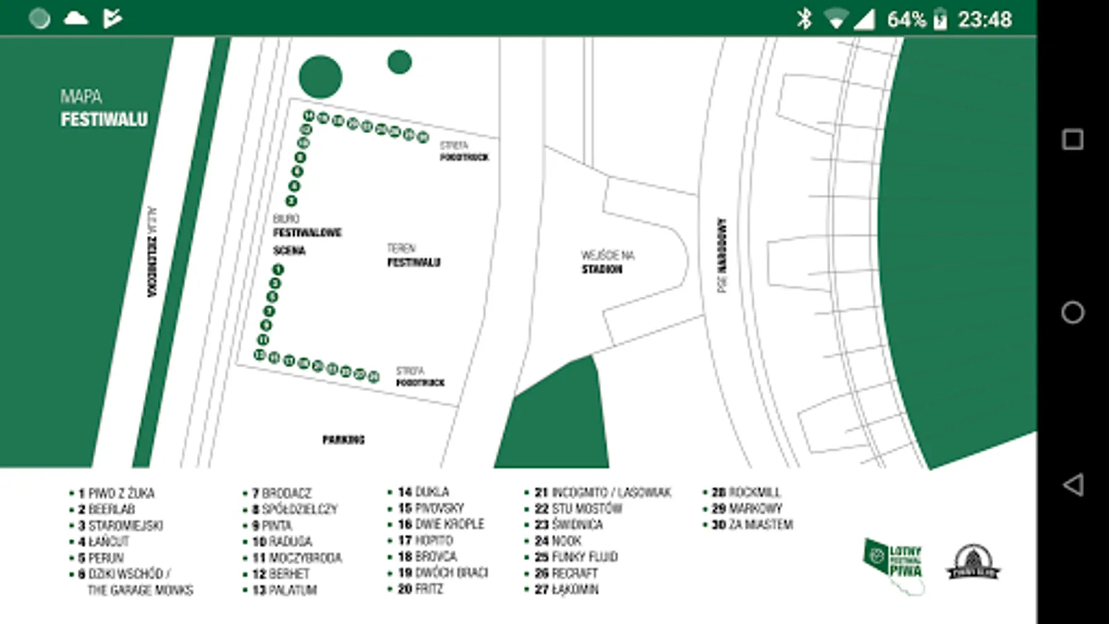 The festival map contains a full list of exhibitors along with an indication of the place where the stand is located.