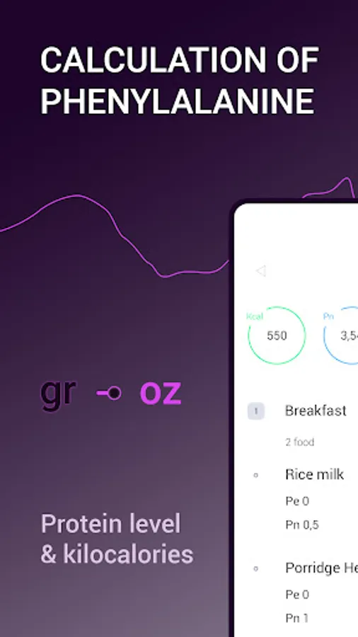 Because food labels do not indicate the phenylalanine content of foods compared to protein content. It is very difficult to track its daily consumption. In the app, you can:
