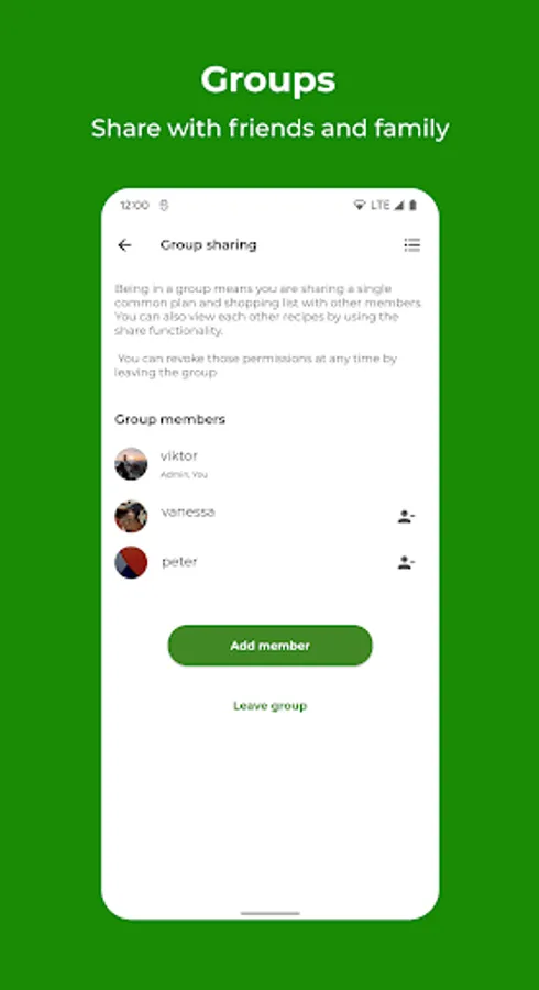 ✅ Share recipes, week plans, shopping lists and more with your friends and family by creating groups.