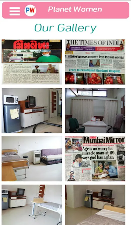 Planet women is premium women health hospital of Ahmedabad India. This is ISO 9001Center. We provide advanced Infertility treatment like IUI, IVF, ICSI, egg donation, Surrogacy, TESA etc. We have advanced endoscopy setup. We have 3D 4D Sonography. This app we have designed to self educate in various issues related to women health. You can also contact us and ask any queries by simply filling the form given in app!