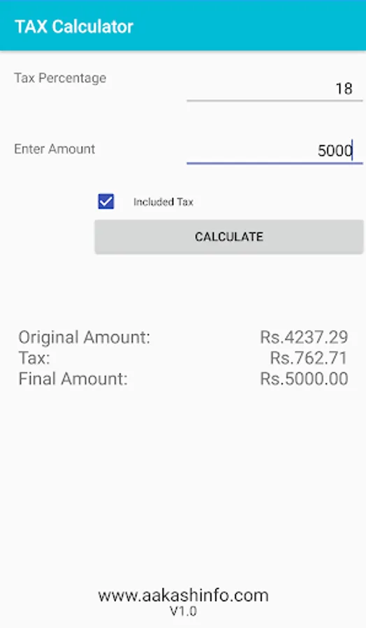 Utility Application To Calculate Tax Amount From Principal Amount or Tax Paid Amount.