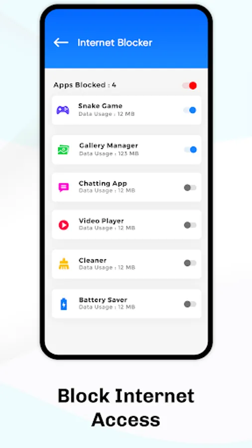It lets you conveniently disable the internet for all apps you select. The selected apps will not be able to go online.