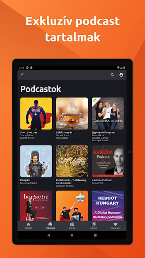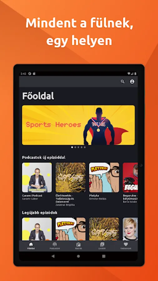 Hungary's first podcast collection platform, where in addition to exclusive Hungarian-language content available only with us, you can also browse the online offer of the largest Hungarian radio channels and choose from the programs you like. We are waiting for constantly updated and expanding offer in popular categories: Sports, Psychology, Entertainment, Politics, Music, Parenting, Humor, Quiz, Talkshow, Public Life, Spirituality, Domestic, Health, Economy, Communication, Technology, Cars, Theater, Culture.