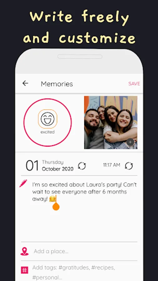 π Find your Memories β Use simple tags to organize every diary entry. Itβs easy to keep multiple journals by using # tags. Add one or more tags to your journal entry, then simply search by tag to see all diary entries on the same topic.