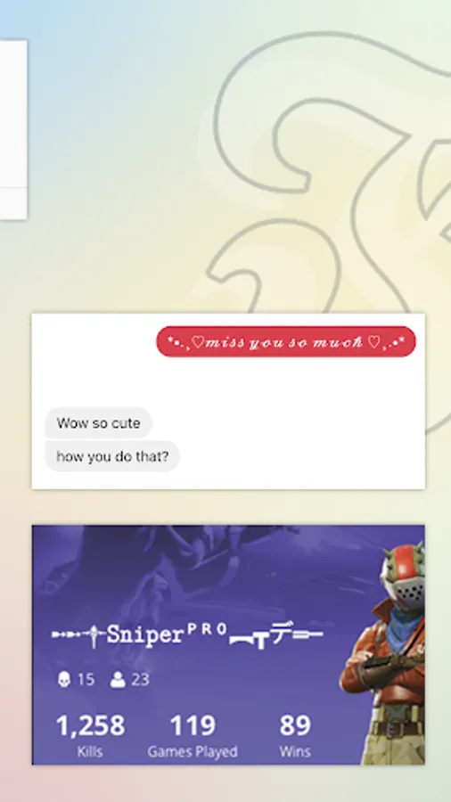More than a hundred of fonts, unlimited decoration combination to write stylish text, coolest tweet / bio, social network update, gaming name.