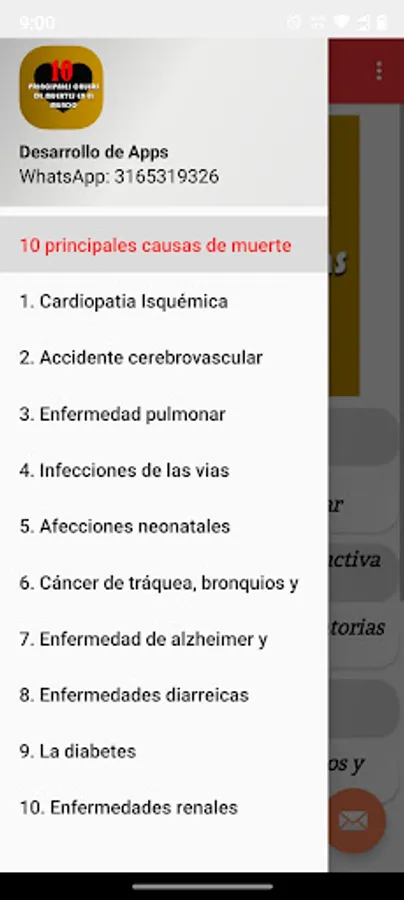 In our App you can find the 10 main causes of death in the world, with relevant information on each of them and recommendations to improve your lifestyle. On the main page you will find the logo of the application and 10 main buttons, each button represents one of the 10 causes of death in the world, when you click on one of them, it will redirect you to a new window with information that will help you to learn more about this cause of death.
