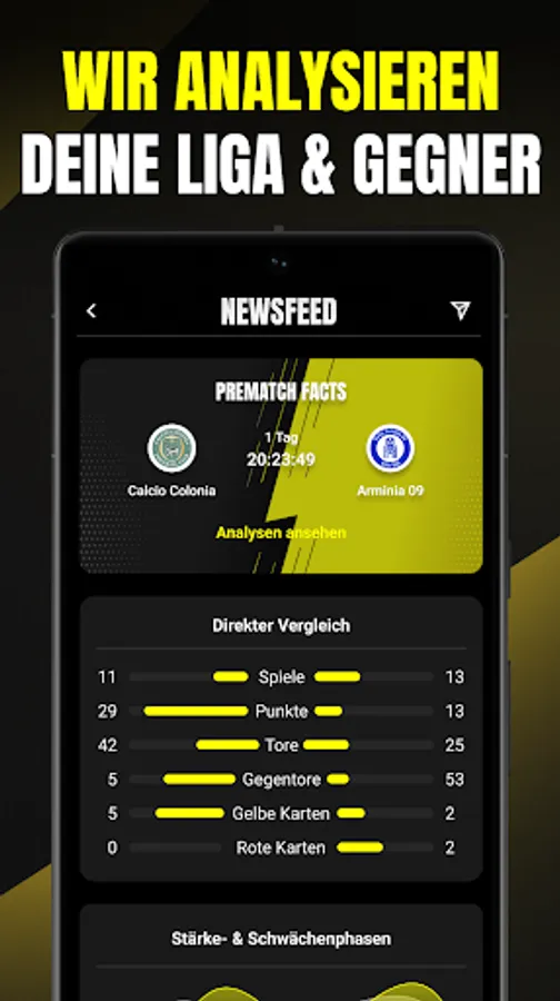 What are the strengths and weaknesses of your next opponent in the league? Should you attack or be defensive? With our pre-match facts, you as a player, fan or coach can ideally prepare for your league opponent. Compare your power ranking and check the exclusive prematch tip rate for your game!
