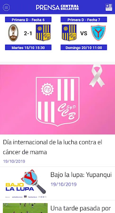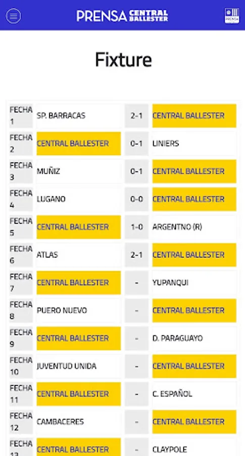 Official application of the Central Ballester Social and Sports Club. Here you will find all the news of the club, statistics, campus information, fixture, futsal, live broadcasts and much more.