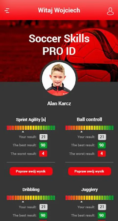 The application also includes the Soccer Skills Pro ID module, thanks to which we can objectively compare the level of development of the football player and compare to peers, because thanks to the work with our youth over the years, we managed to gather a large database of players from different age categories .
