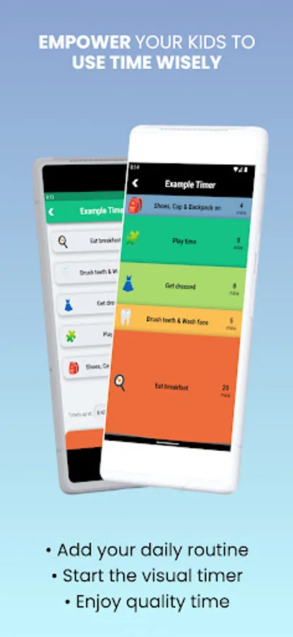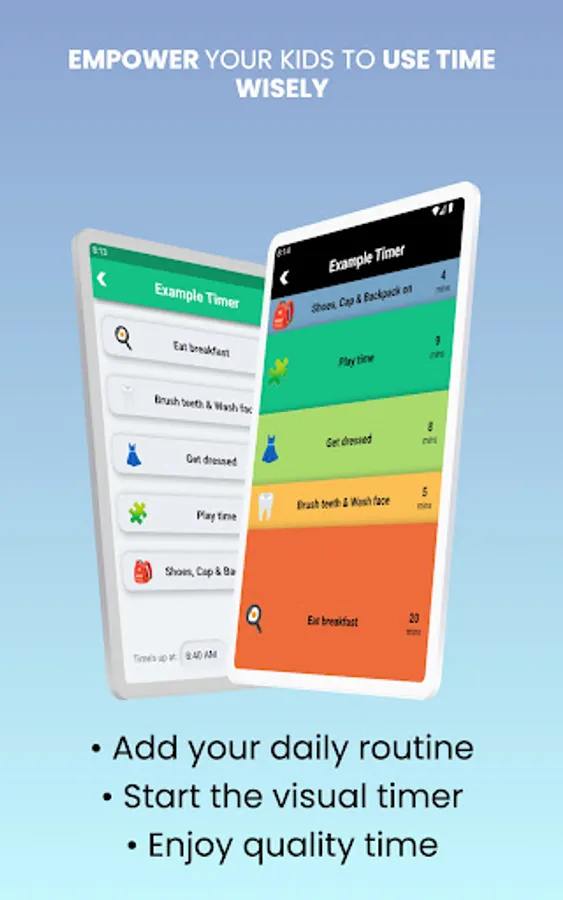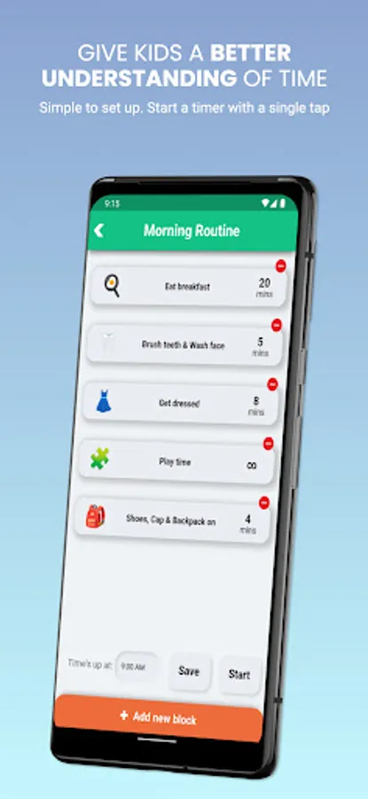 By visualising time in color-coded blocks, your child can see how long things take, and realize their own agency when it comes to how they spend their time.