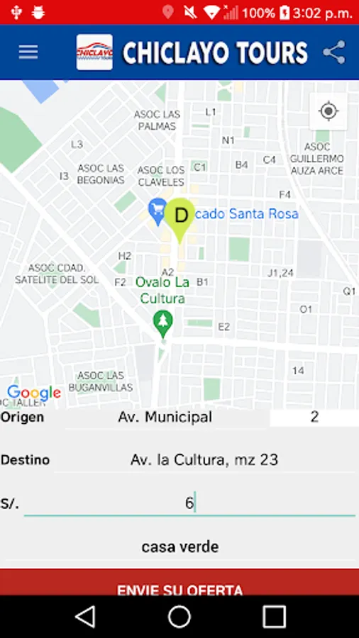 Puedes precisar tu ubicación moviendo el marcador; esta le aparecerá al taxista.