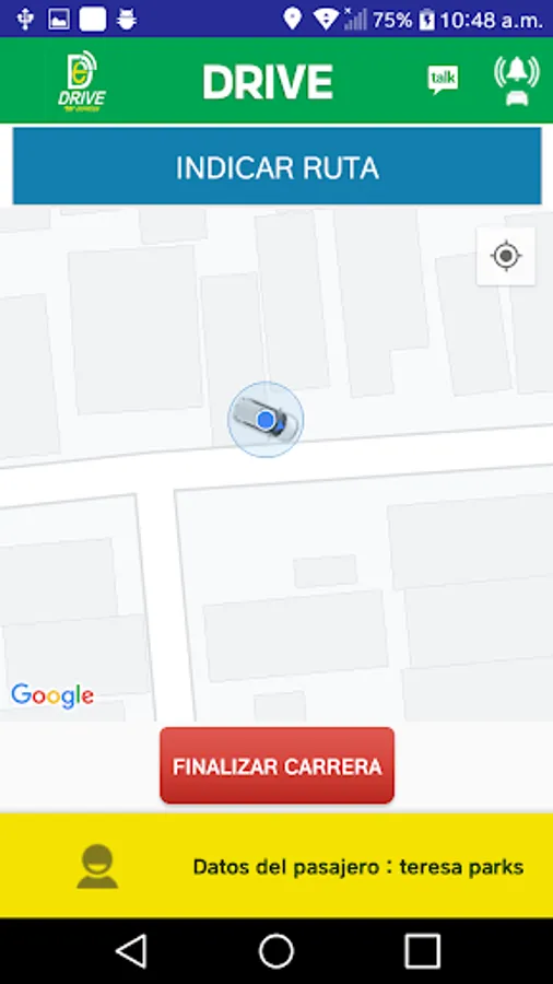 Podrás ver la ubicación en el mapa del pasajero y los datos del pasajero.