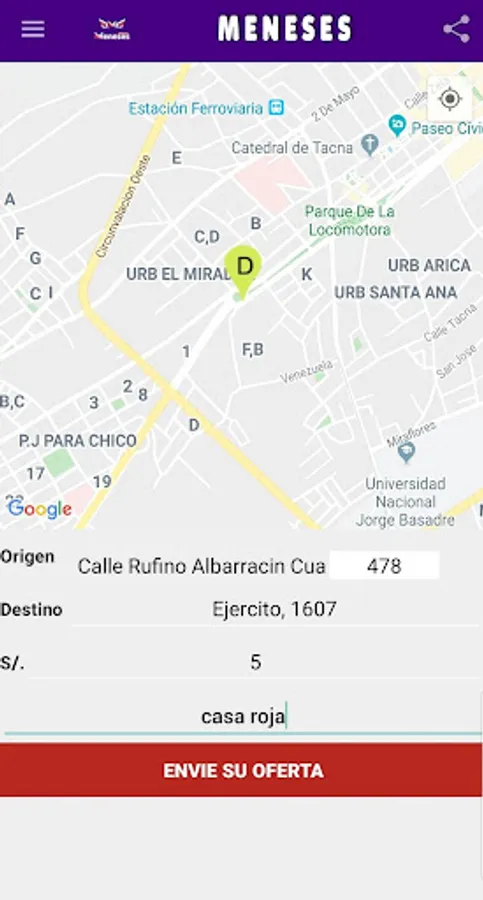 You can specify your location by moving the marker; This will appear to the taxi driver.