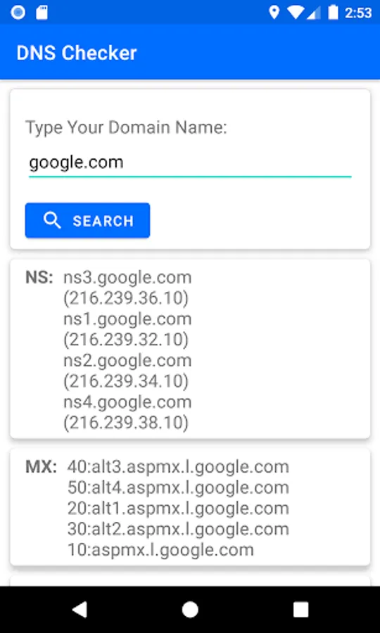 Within this DNS Checker tool, you can find, all Nameservers and its IPs, A Records (Server IP), MX Records (Mail), CNAME Records, and all the TXT (SPF, and other verification Text Records) records of your domain name. No matter what is the domain name you searching for. Within 2 seconds, you will get the result by pressing search button. If you are a webmaster, web hosting provider, or web developer, this tool will be most interested. Simple and easy way to use this with one click.