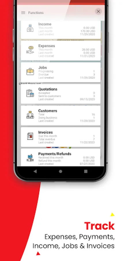• Instantly generate invoices from jobs or quotations to keep track of your work and payments