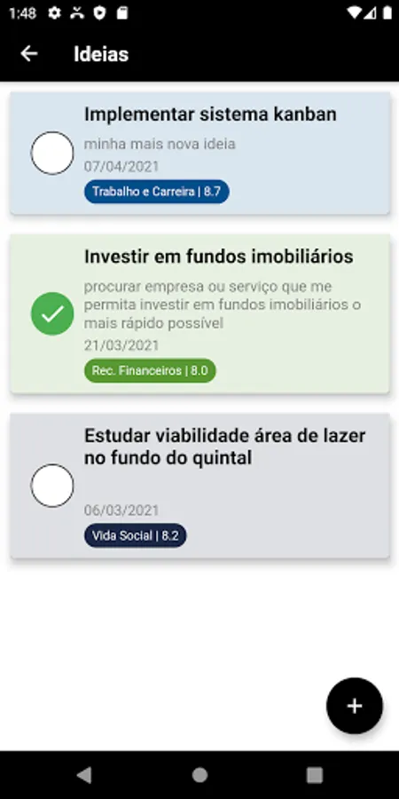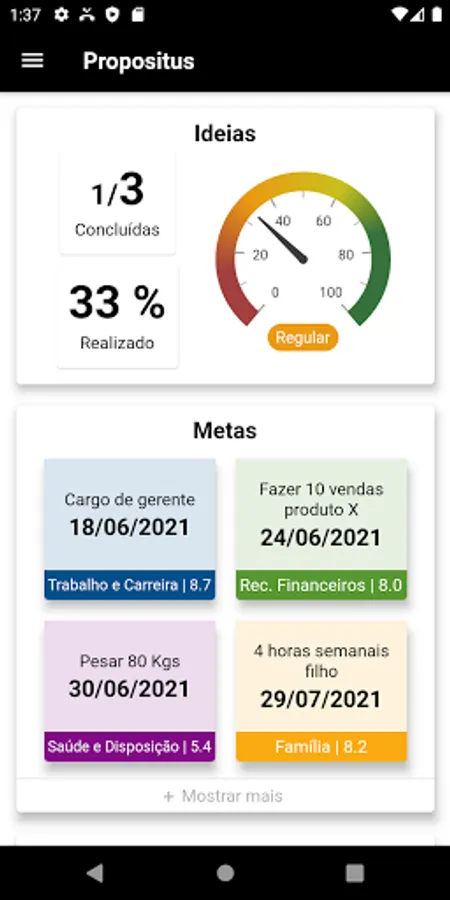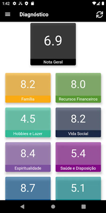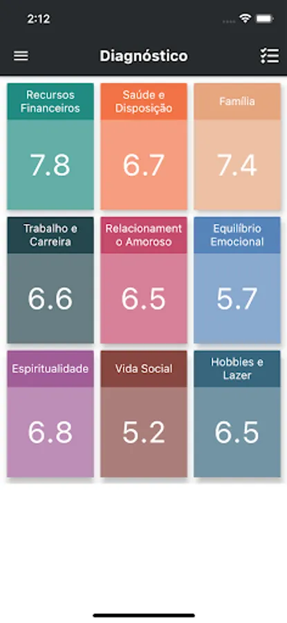 - Carry out diagnoses of the areas of life (family, financial resources, hobbies and leisure, social life, spirituality, health and disposition, work and career, emotional balance and love relationship), receive a grade for each of these areas according to your current moment and start to organize better to develop each one of them.
