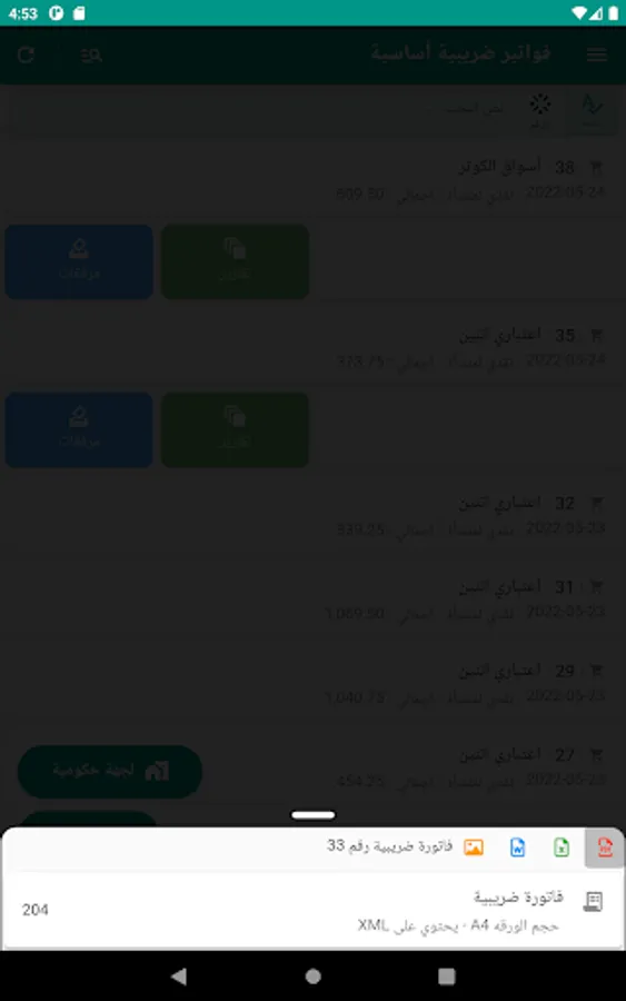 The ability to export invoices / Credit and debit notes to PDF containing the Xml file with the ability to share it via other Apps like WhatsApp.