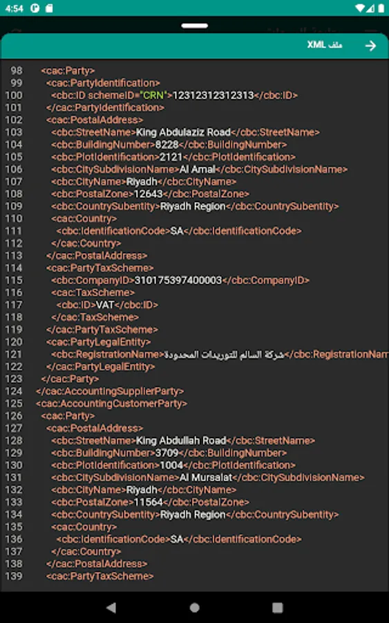 Generate an xml file for each electronic invoice / credit note / debit note according to the second stage of the Zakat, Tax and Customs Authority's requirements ( ZATCA - KSA ).
