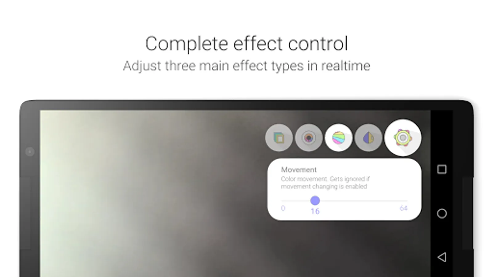 - Ajdust affect amount, size, speed and gradual changes