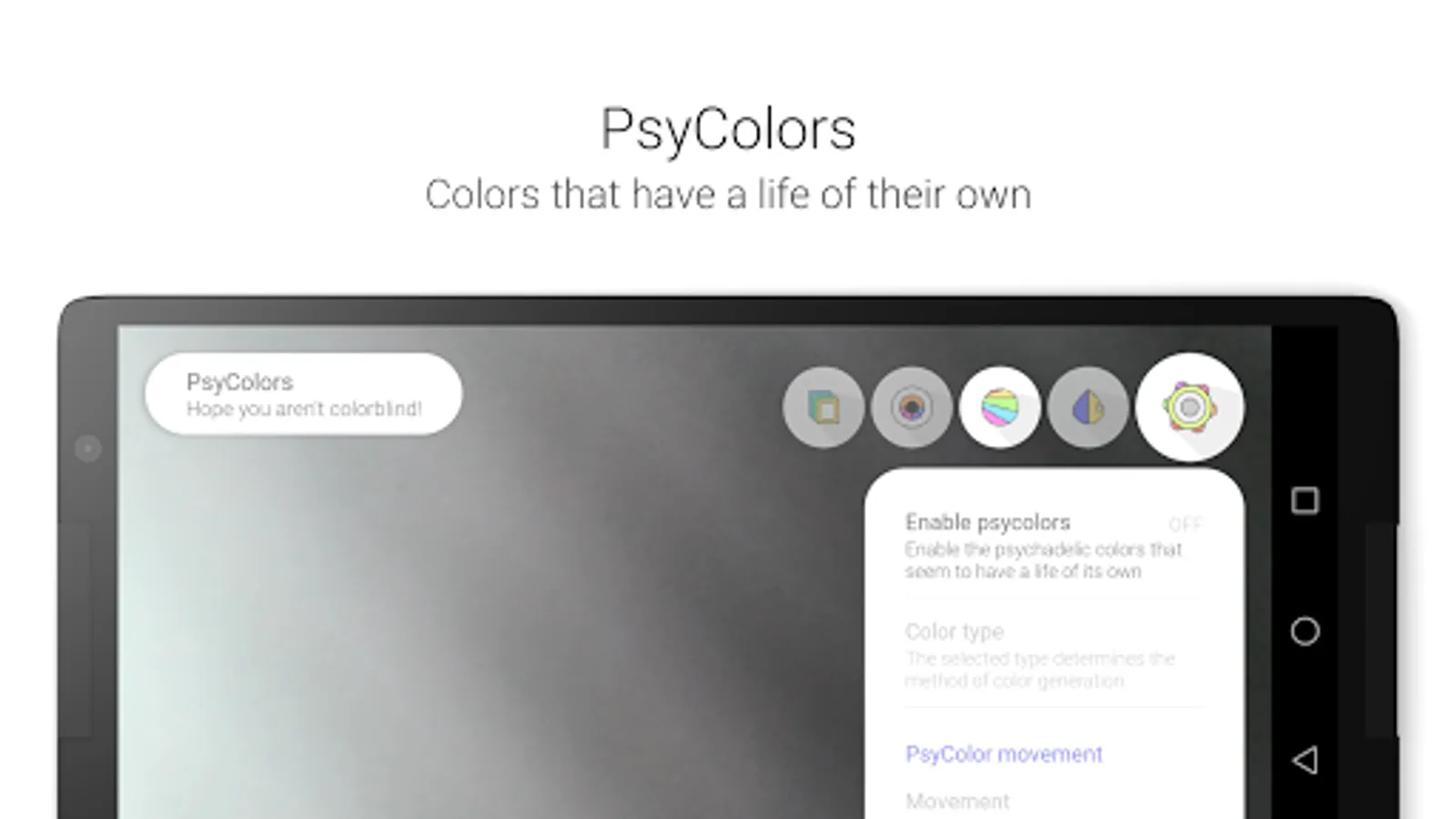 It uses the phone camera to create real-time visual experiences for the user with amazing quality and speed. Psychedelic dream was developed with an idea of a safe and fun visual experience for anybody that owns a suitable android phone.
