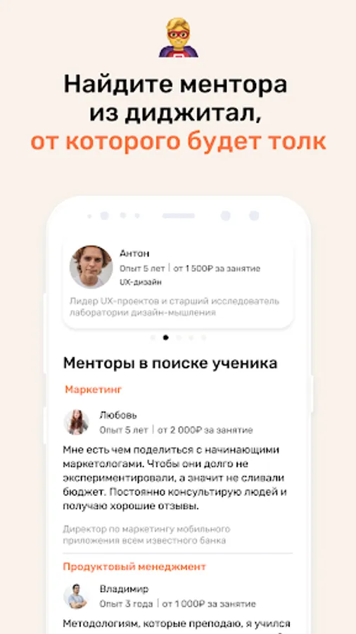 Tolk is a place where experts and young specialists from digital who are ready to mentor come together. On the service, you can find a mentor for consultation, portfolio analysis or individual classes to achieve your goals.