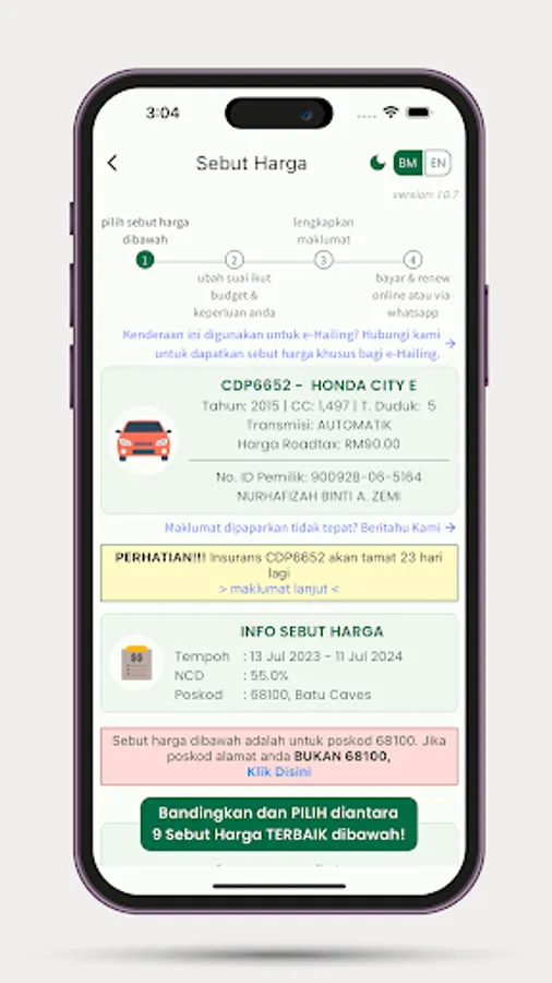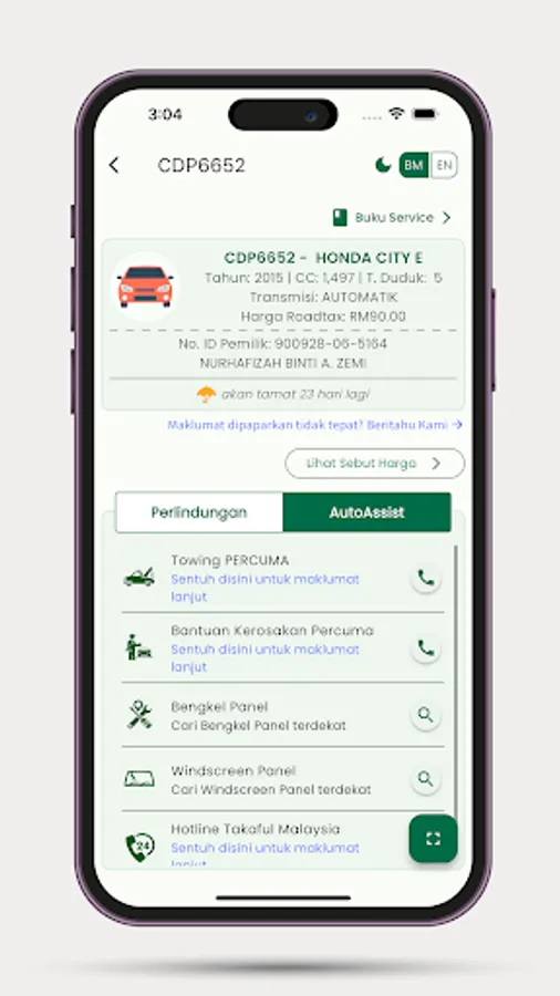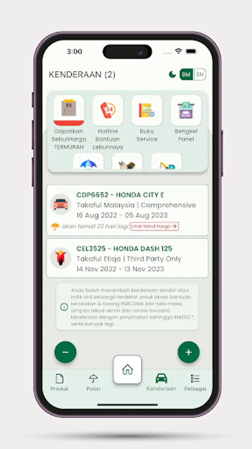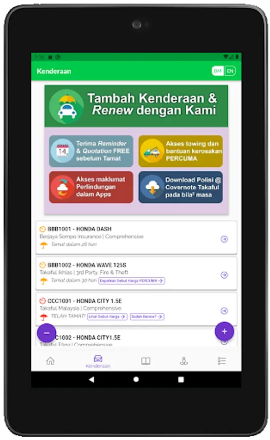 - Memperbaharui insurans dan roadtax kenderaan
