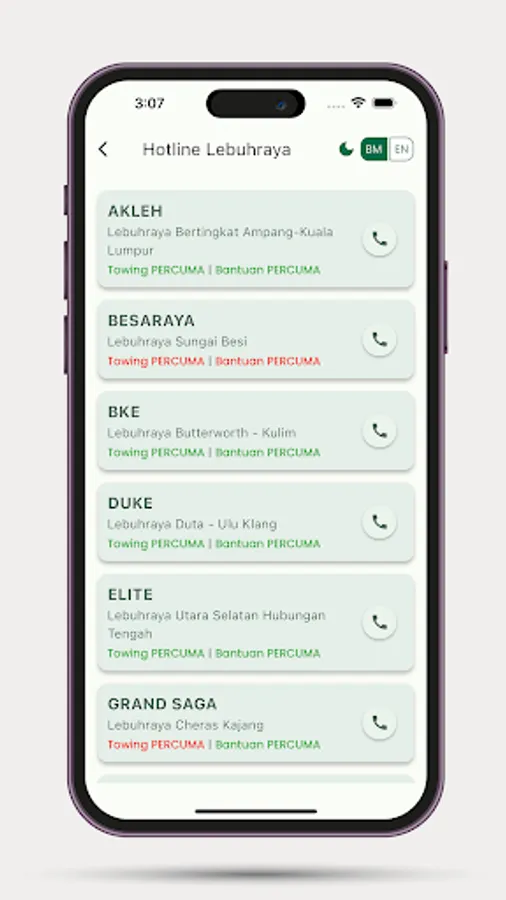 - Panggilan Hotline lebuhraya Malaysia