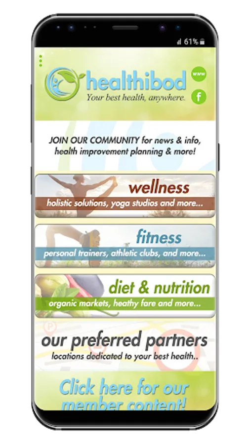 Healthibod is dedicated to providing information, content and support that empowers and inspires people to improve and maintain their health and well-being. Our areas of focus are diet & nutrition, fitness and wellness – broad yet closely related categories. Use our app to locate local resources, coupons and events.