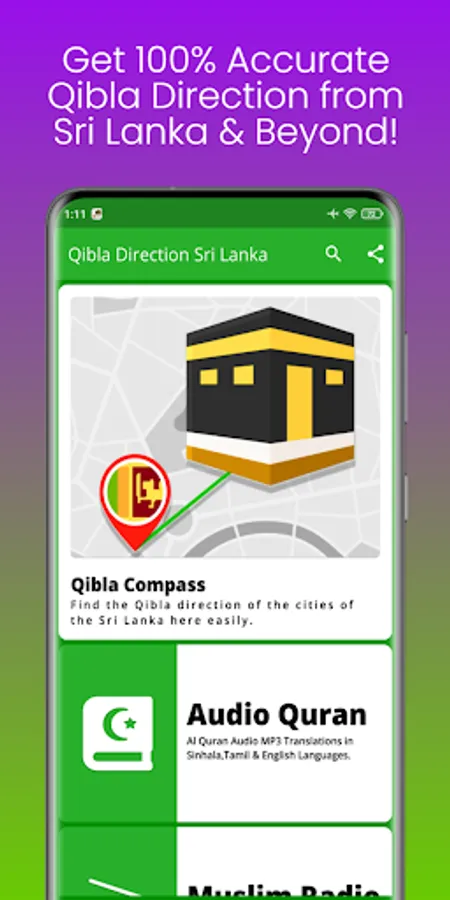 Qibla Direction Sri Lanka app is a useful app for the Sri Lankan Muslim Community and also for all Muslims around the world to find 100% accurate Qibla Directions from their location and also listen to Audio Quran in Sinhala, Tamil, and English Languages from anywhere anytime!