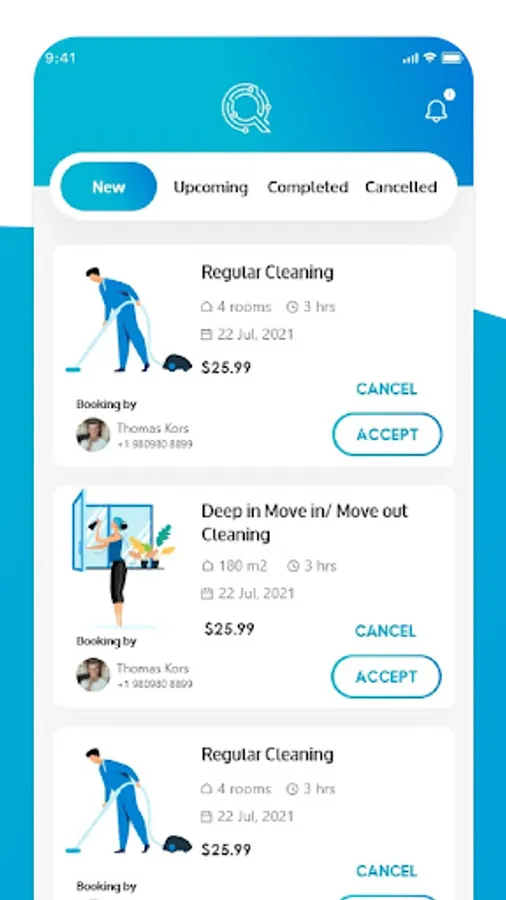 No matter where you are, whether you're at home or on your way to your next client, with Qleanon it's easier than ever to receive, accept and manage your appointments via your smartphone.