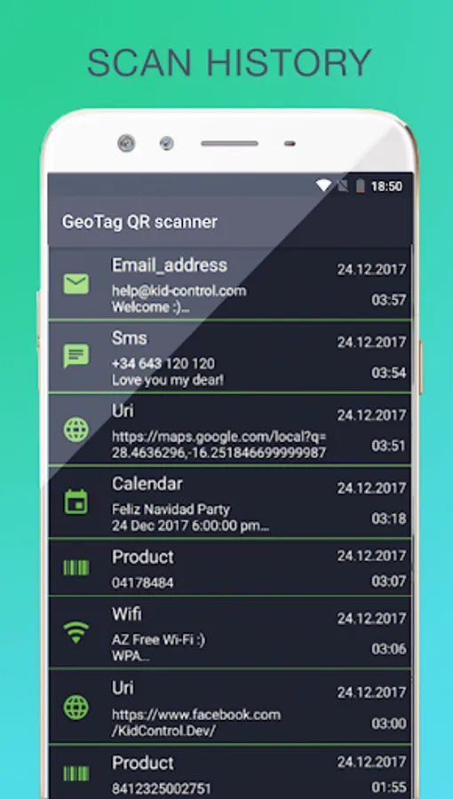 Safe reading of QR codes with protection from malicious links to fake and dangerous sites. Find scanned QR code and the barcode immediately on the map! Scan history. Export and share data with built-in Google Docs export.