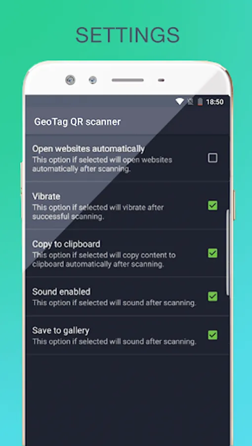 Get a beep and vibration when QR code scanner with geotags successfully recognizes QR code or barcode.
