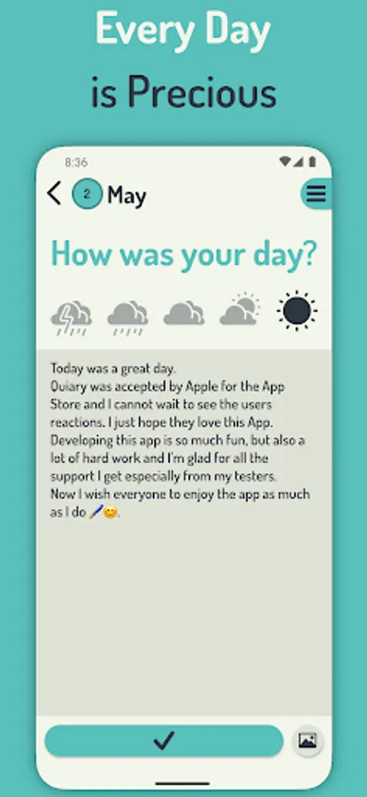 Sadly our memory is not perfect and with every day, our memories tend to fade away or we alter them without even recognising. Quiary can help you not to lose your precious memories. Create one entry a day, set your mood and describe the events and your thoughts. By this way you can preserve your past and use it for the future.