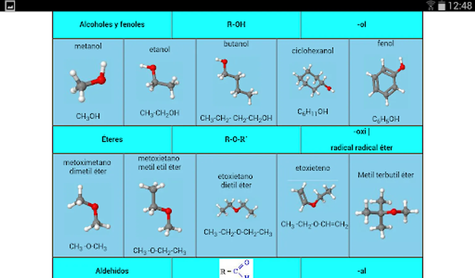 - Compounds of carbon chemistry grouped into functional groups in the form of a table and in the form of a gallery.