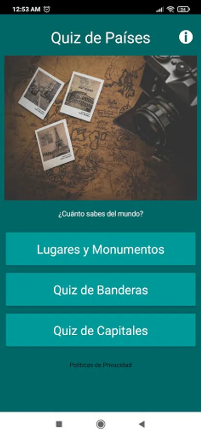 Countries Quiz is a question game that shows the flags of countries in the world, it has several categories with the best known monuments in the world, capitals and places.