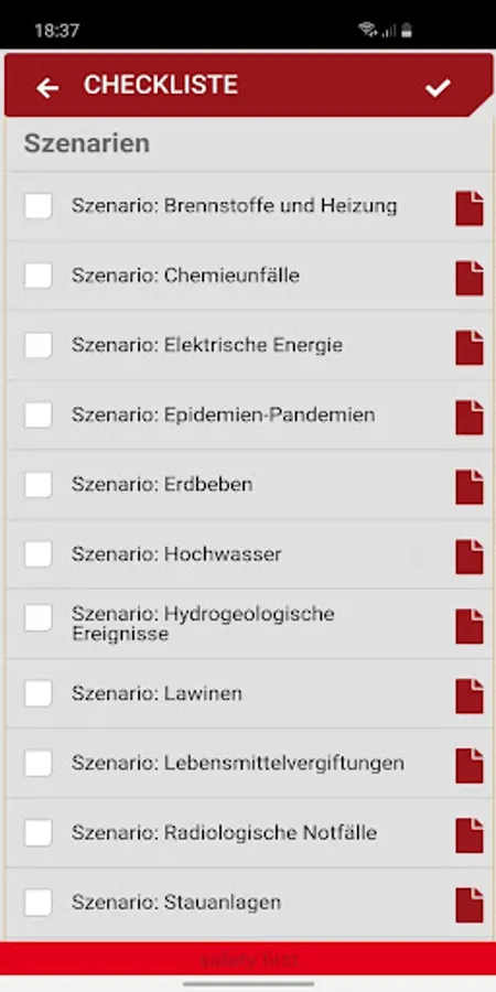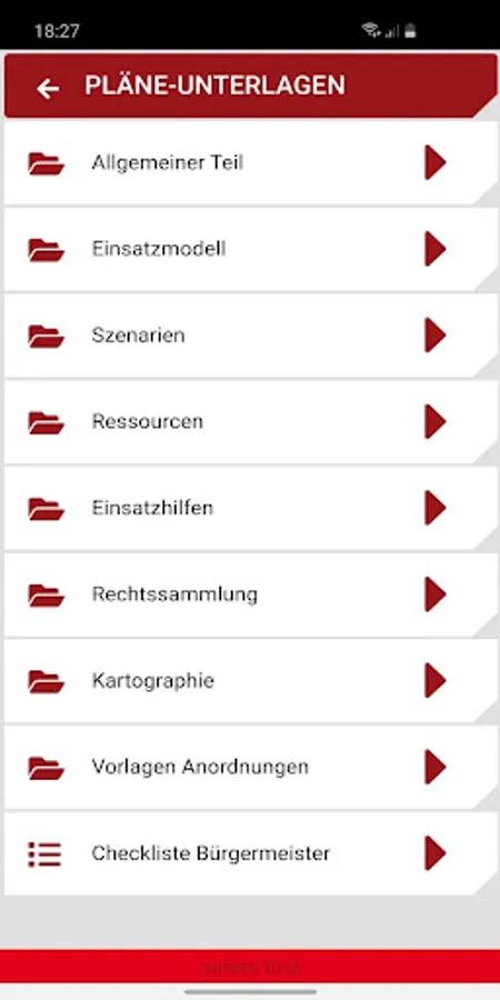 The contents of the emergency plan can be called up in the "Manual" area. Checklists, instructions, plans, and further information can be called up here immediately.
