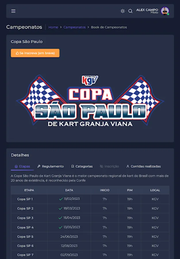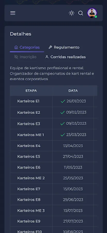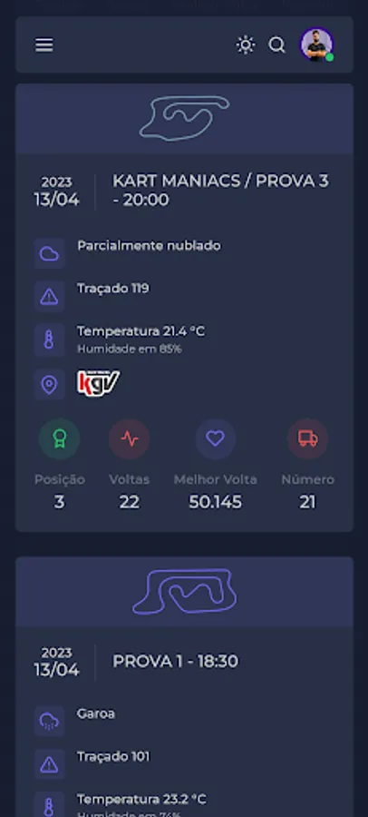 An application that allows you to follow your karting career with statistics and times of the last races in one place.