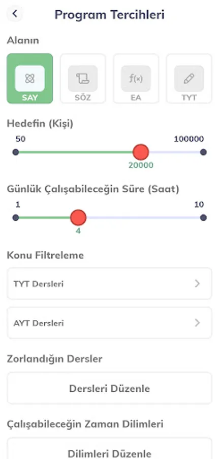 Indicate the lessons and subjects that are difficult for you so that we can create a more efficient program. You can remove the topics you have already finished from your program by using the topic filter.