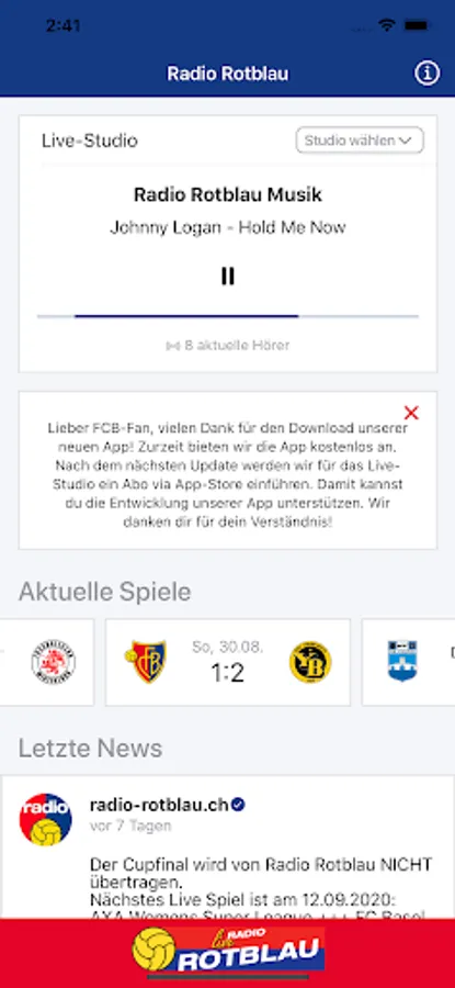 We hereby present the new player app from Radio Rotblau, which all studios make available for streaming.